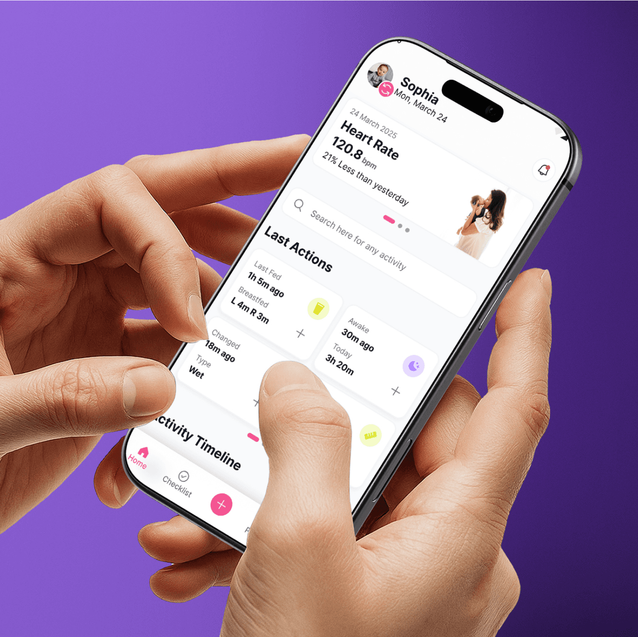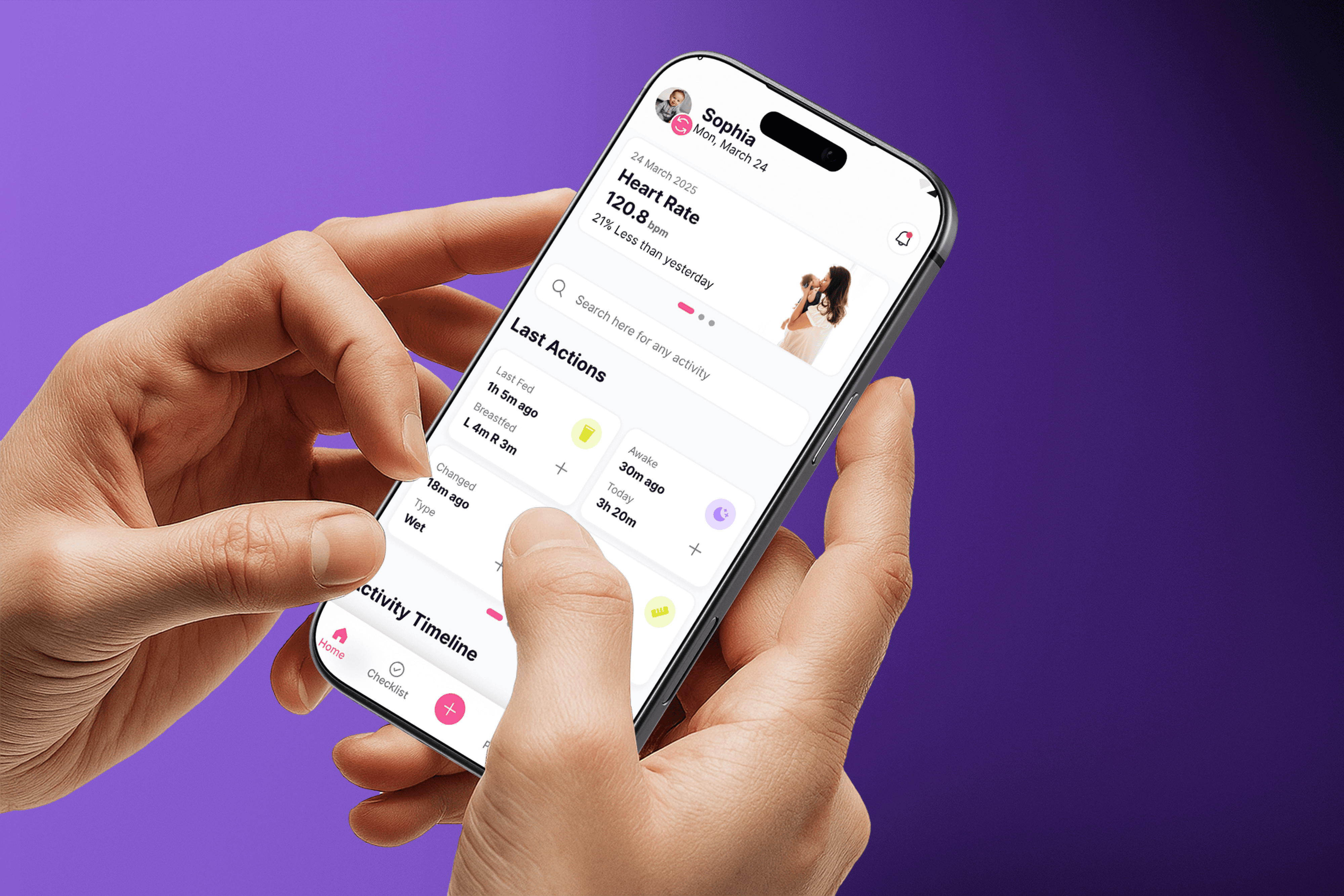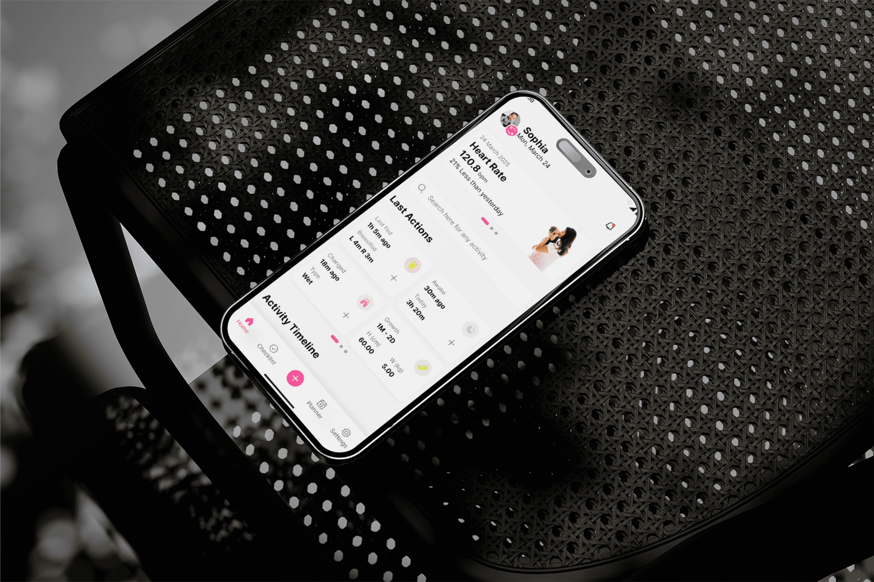 Well, to create the right components of this application, I blended simplicity with usability to find the right hierarchy of the information as well as components. I placed a switch profile option in the corner, for the parents who have more than one baby. The suggestion cards, can be really helpful for showing tips and useful for having a glance at information. Then a set of most repeated and essential actions followed by the timeline.