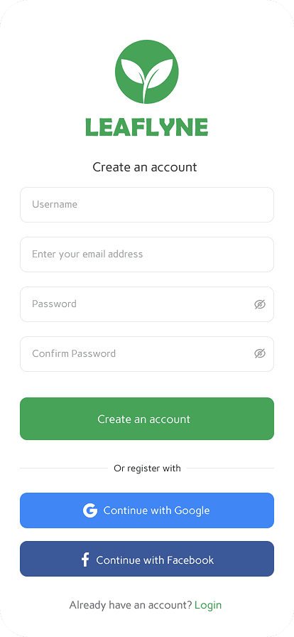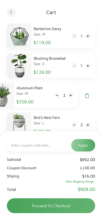 I chose green as accent color with white background. This makes the users feel comfortable and relatable to the product, since the product is about the plants.