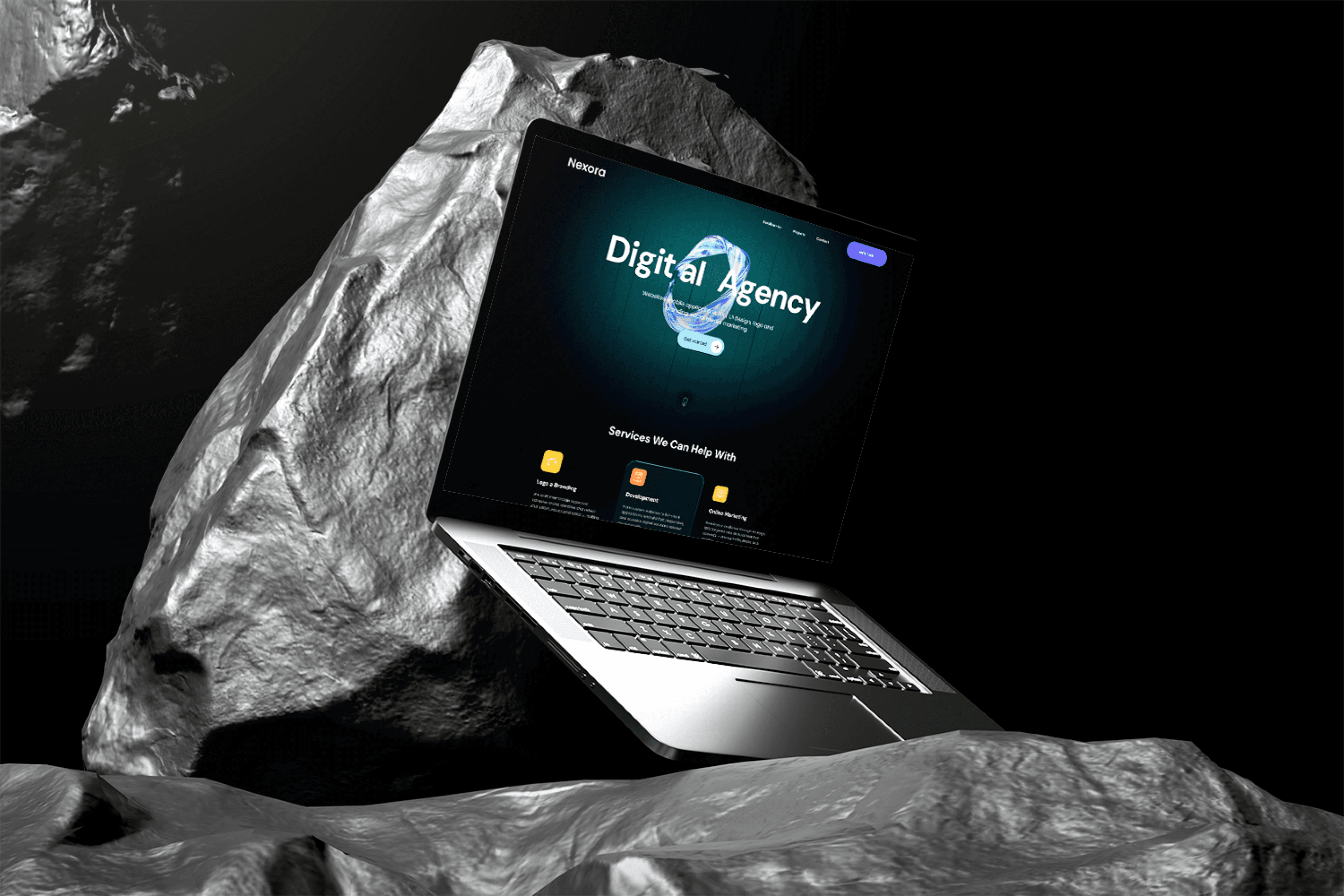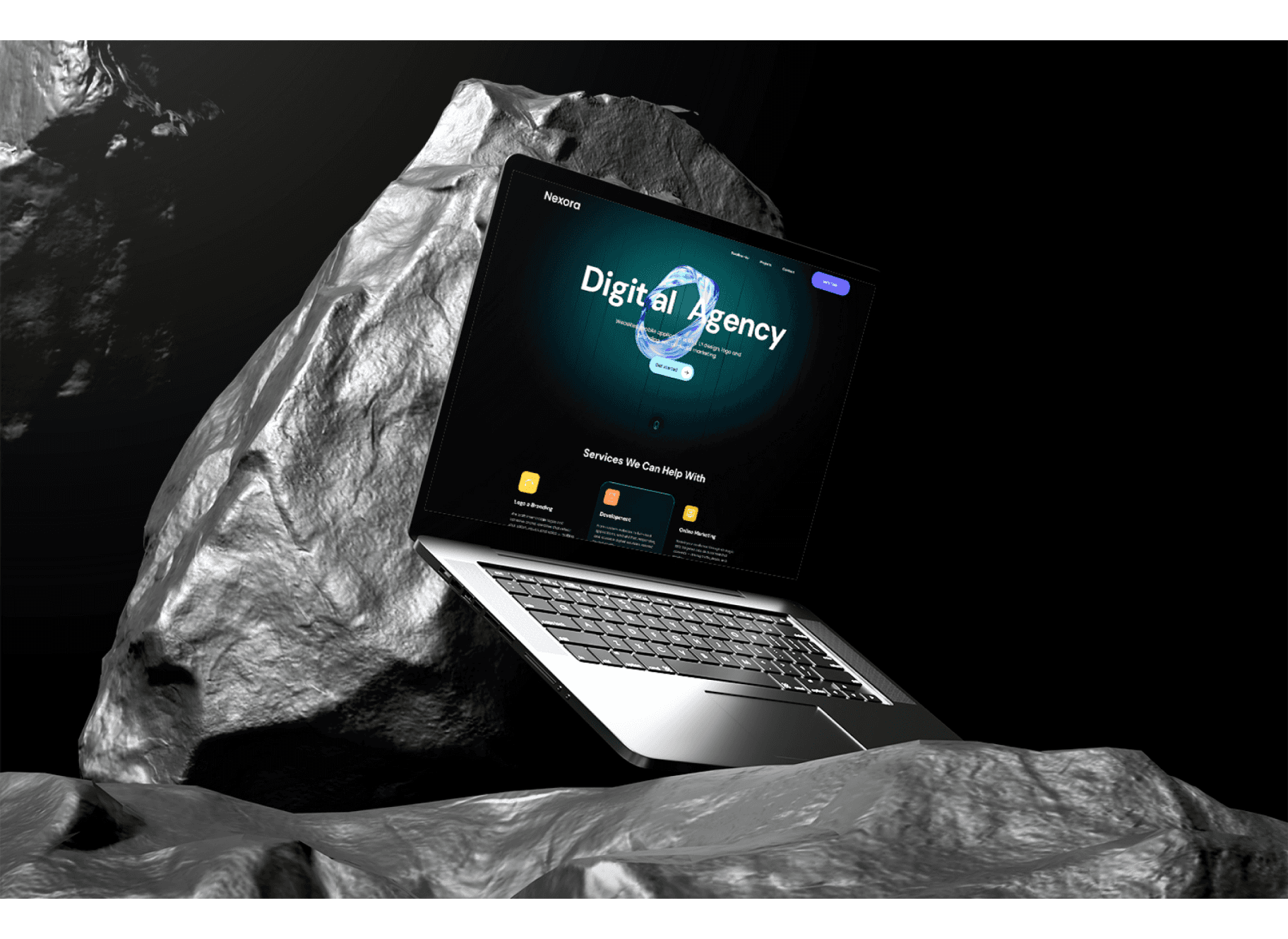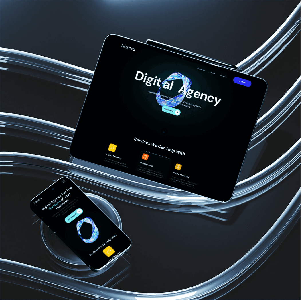 Landing page design for a digital agency, crafted for both web and mobile to reflect a sleek, modern brand presence and clear service communication.